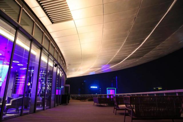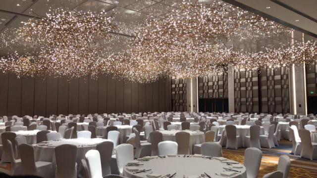 BIM理念貫穿工程全生命周期,從建筑、結(jié)構(gòu)模型的搭建,結(jié)構(gòu)受力分析,再到鋼結(jié)構(gòu)、幕墻工程、精裝修樣板間等的虛擬建造,機(jī)電安裝模擬碰撞分析,直觀的BIM三維模型,能夠讓工程人對(duì)各施工細(xì)節(jié)進(jìn)行全方位把控。針對(duì)宴會(huì)廳、開啟式屋面等造型多、結(jié)構(gòu)復(fù)雜的區(qū)域,項(xiàng)目團(tuán)隊(duì)充分利用信息化工具,通過將圖紙?jiān)诂F(xiàn)場(chǎng)進(jìn)行實(shí)體噴繪的方式,讓工人結(jié)合手持終端中的深化設(shè)計(jì)圖紙進(jìn)行現(xiàn)場(chǎng)作業(yè),實(shí)現(xiàn)了縮短工期,節(jié)能降噪的目的,順應(yīng)了智能化、信息化時(shí)代的發(fā)展。