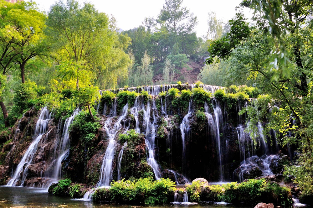 這里山花爛漫、泉水沁心;炎夏清風(fēng)習(xí)習(xí)、綠影婆娑。臺臺清泉晶瑩剔透,潺潺流水輕歌漫舞。透過洞前水簾煙雨,霧泉身姿活靈活現(xiàn),簡直是亙古神雕的碩大盆景。