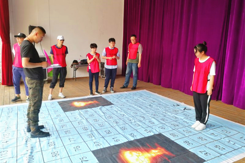 大伙兒帶著對上一個項目的回味,馬上又來到了“穿越雷區(qū)”活動,這完全是一個團(tuán)隊合作項目。7人一隊輪流上場,以成功避雷到達(dá)終點者為勝。