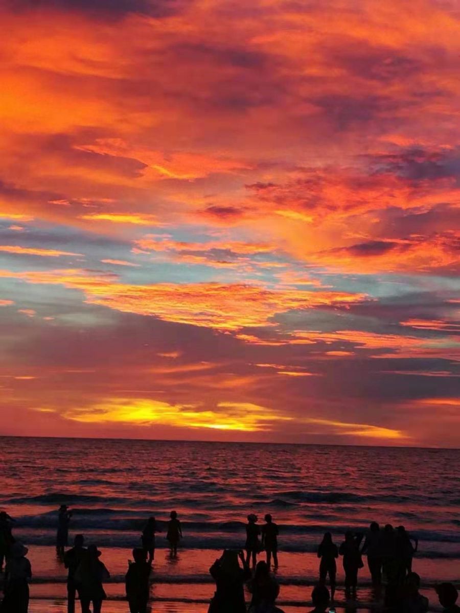 沙巴整條海岸線向西,是全球三大最美日落之一,去的那天特別幸運(yùn),火燒云燒了整片天空,配上沙灘和當(dāng)?shù)靥匾鉁?zhǔn)備的泡泡們,一群人在灘涂上奔跑打鬧,仿佛都回到了兒時。