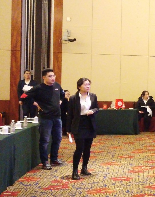 造價(jià)演出小組的幾位“司草”被幾位“司花”圍在中間熟練的對(duì)著臺(tái)詞。