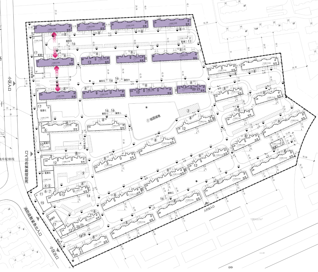 此項(xiàng)目高層與洋房間距用防火墻分割,間距無(wú)限小,增加小高層與洋房密度,但犧牲消防驗(yàn)收風(fēng)險(xiǎn)。