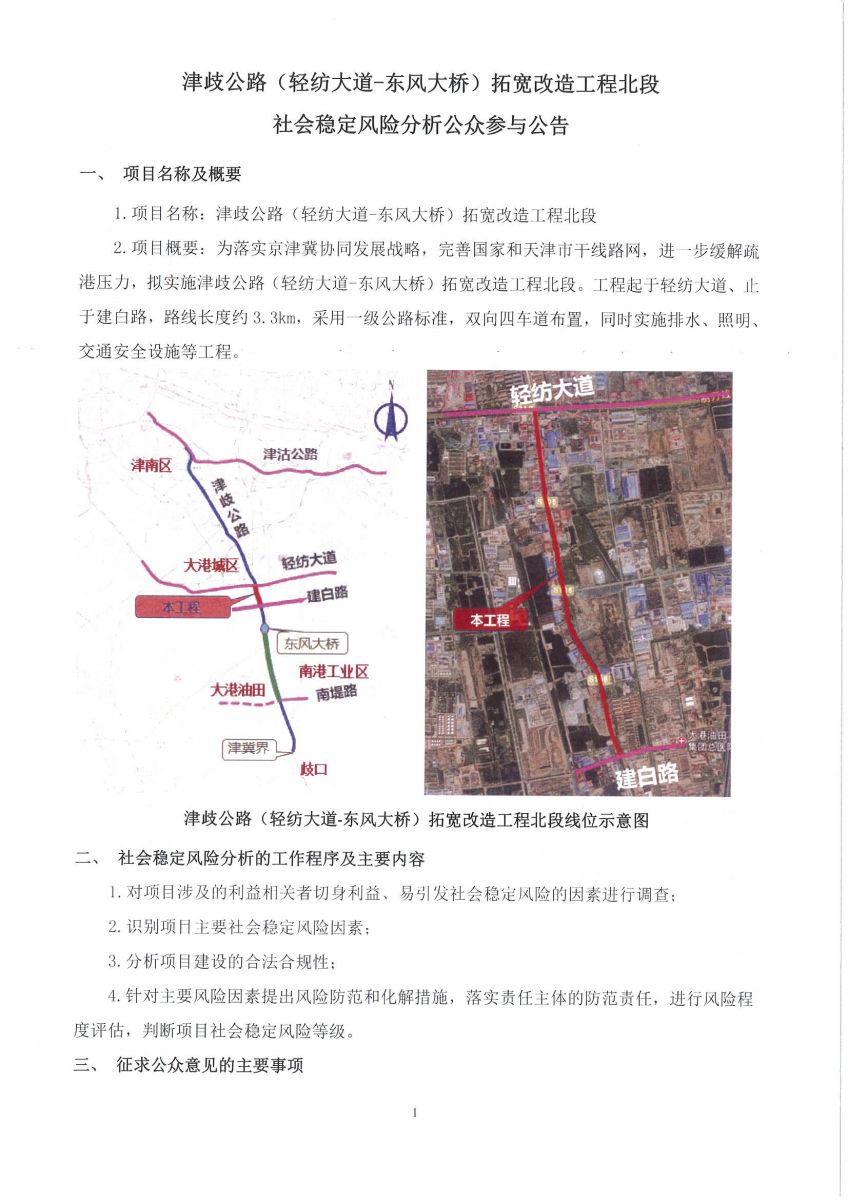津歧公路(輕紡大道-東風(fēng)大橋)拓寬改造工程北段社會(huì)穩(wěn)定風(fēng)險(xiǎn)分析公眾參與公告