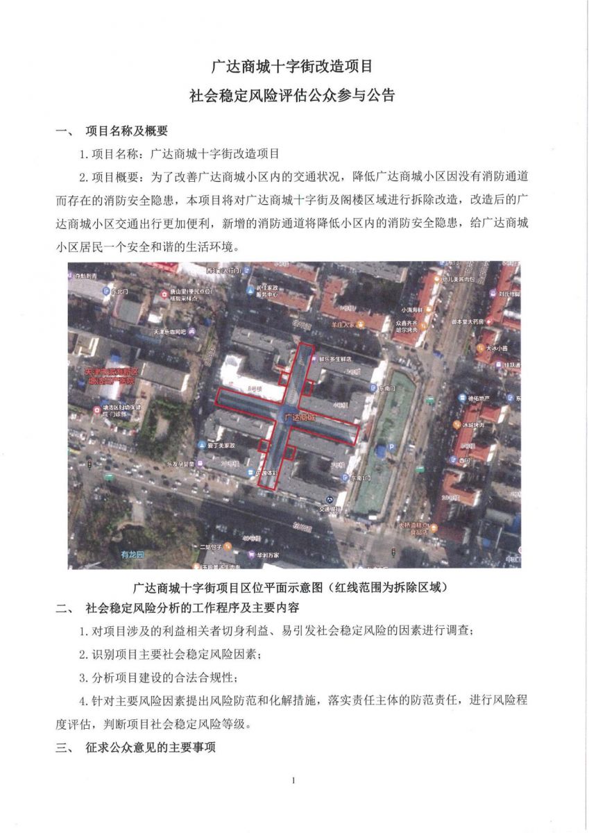 廣達商城十字街改造項目社會穩(wěn)定風險評估公眾參與公告